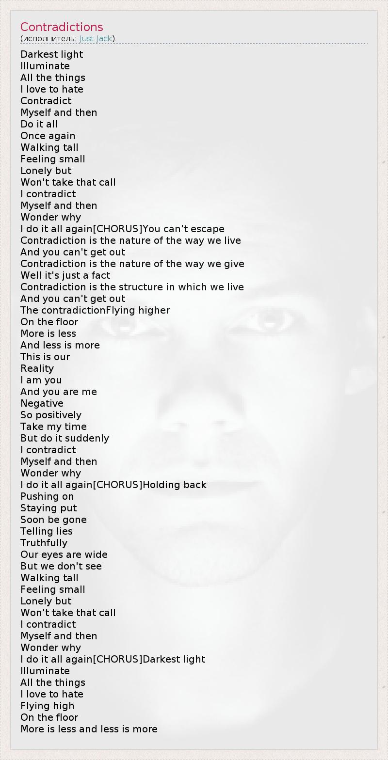 Это интересно:История певца по имени Jack Allsopp, который именует себя просто Just Jack - это почти сказка о молодом человеке, родившемся в бедном квартале Лондона и по счастливой случайности ставшим новым кумиром молодежи. Его музыкальный стиль — это смесь тех музыкальных направлений, среди которых он вырос – брэйкдэнс, электро, хип-хоп, рэп, хаус и поп-музыка.По признанию самого Just Jack, музыка всегда была... продолжение