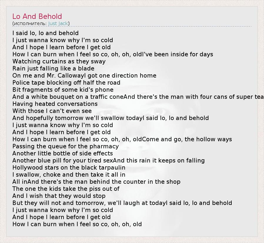 А как ты думаешь, о чем песня "Lo And Behold" ?