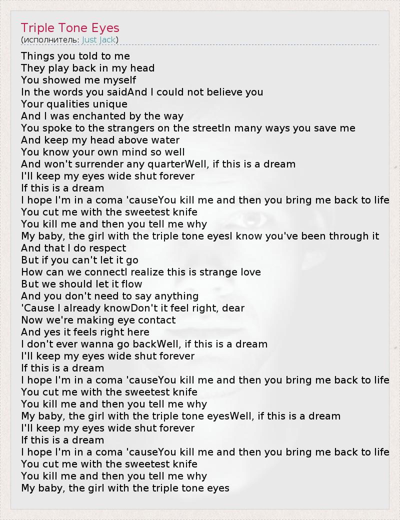 А как ты думаешь, о чем песня "Triple Tone Eyes" ?