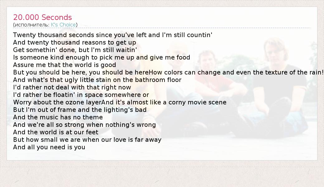 А как ты думаешь, о чем песня "20.000 Seconds" ?