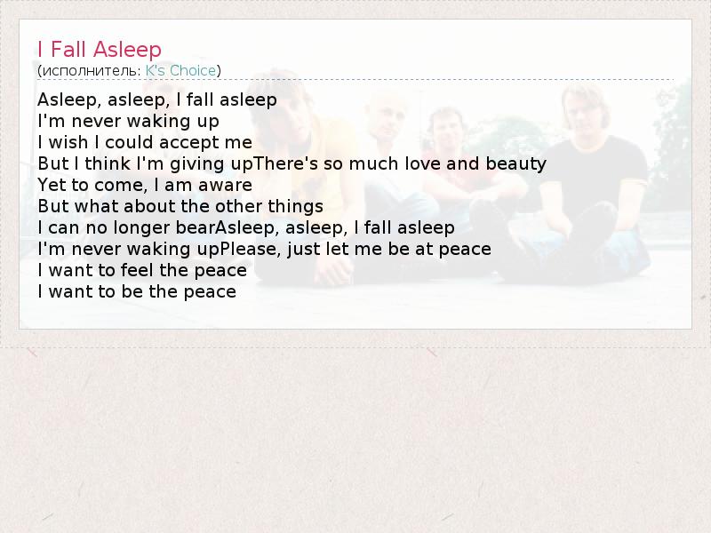 А как ты думаешь, о чем песня "I Fall Asleep" ?