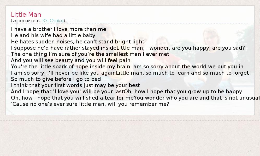 I am so sorry, I'll never be like you againLittle man, so much to learn and so much to forget