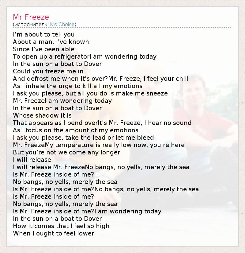 А как ты думаешь, о чем песня "Mr Freeze" ?