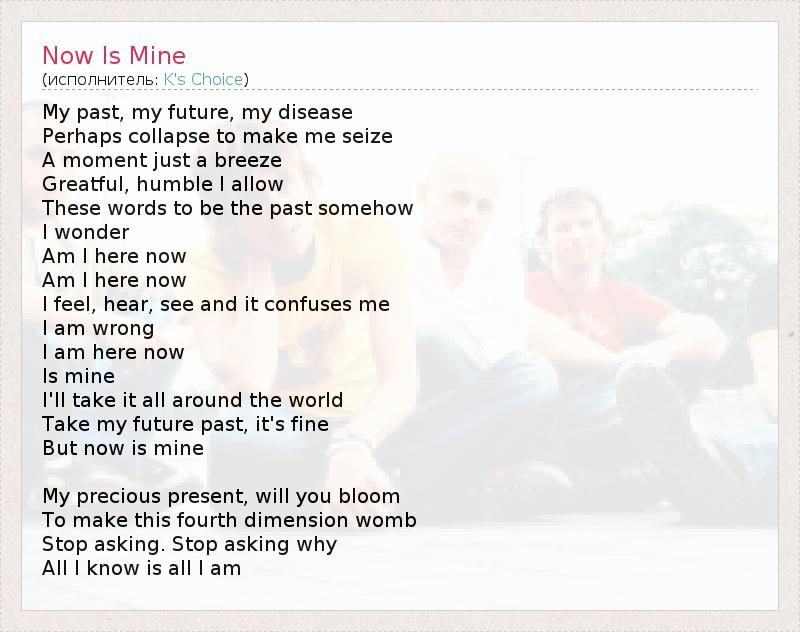 А как ты думаешь, о чем песня "Now Is Mine" ?