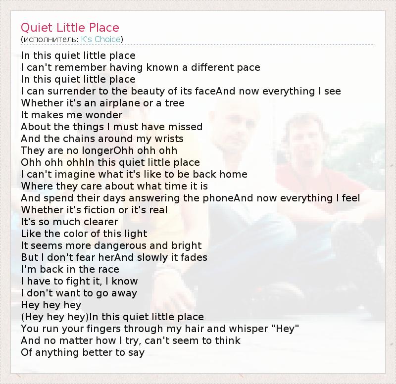 А как ты думаешь, о чем песня "Quiet Little Place" ?