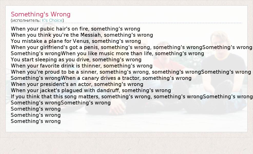 А как ты думаешь, о чем песня "Something's Wrong" ?