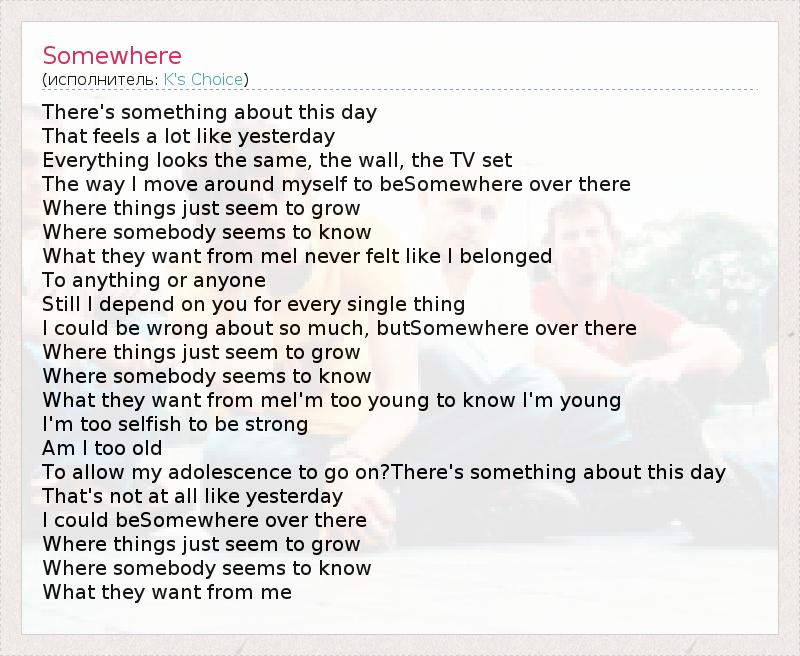 А как ты думаешь, о чем песня "Somewhere" ?