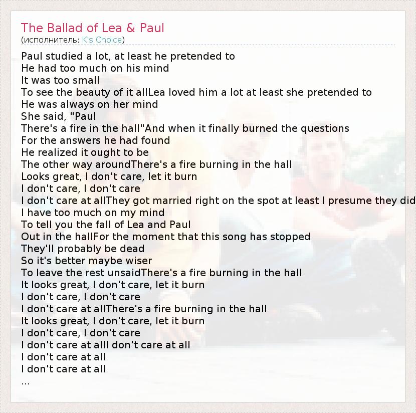 А как ты думаешь, о чем песня "The Ballad of Lea & Paul" ?