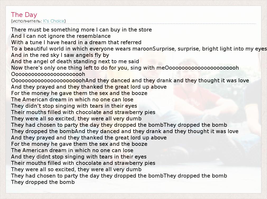 They dropped the bombAnd they danced and they drank and they thought it was love