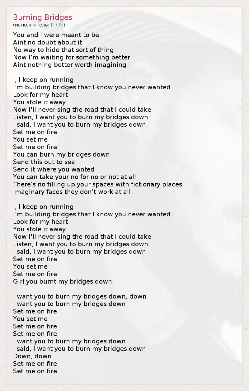 А как ты думаешь, о чем песня "Burning Bridges" ?