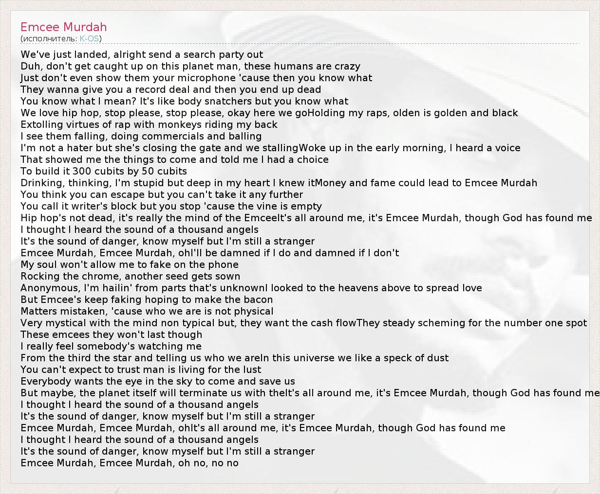 А как ты думаешь, о чем песня "Emcee Murdah" ?