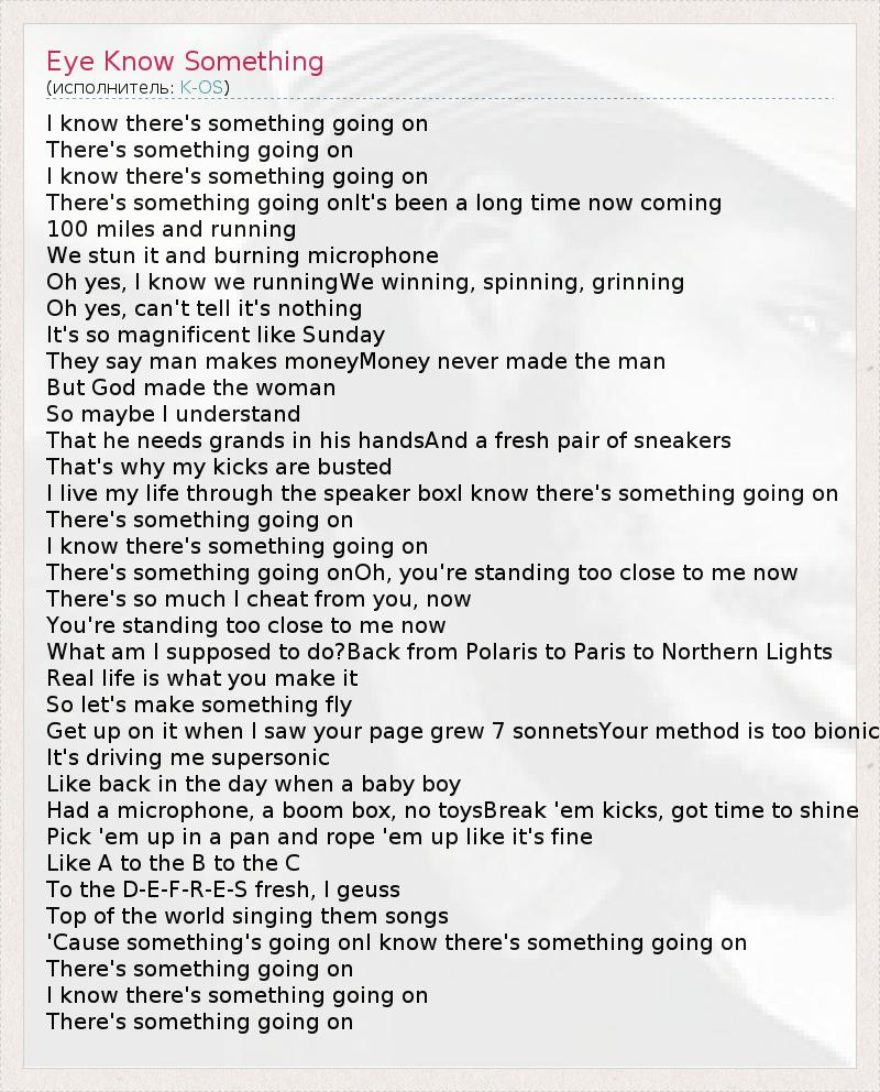 А как ты думаешь, о чем песня "Eye Know Something" ?