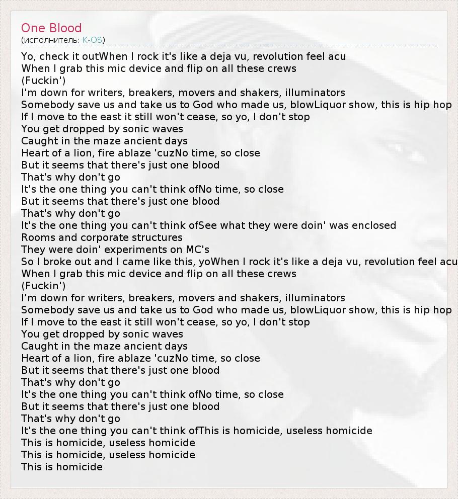 А как ты думаешь, о чем песня "One Blood" ?