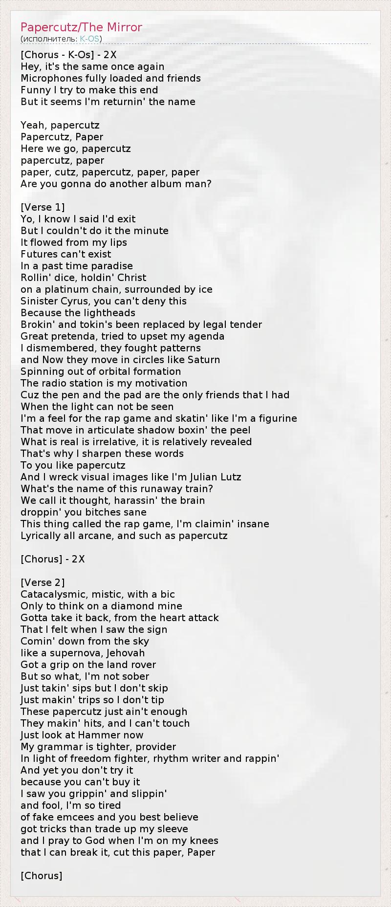 А как ты думаешь, о чем песня "Papercutz/The Mirror" ?