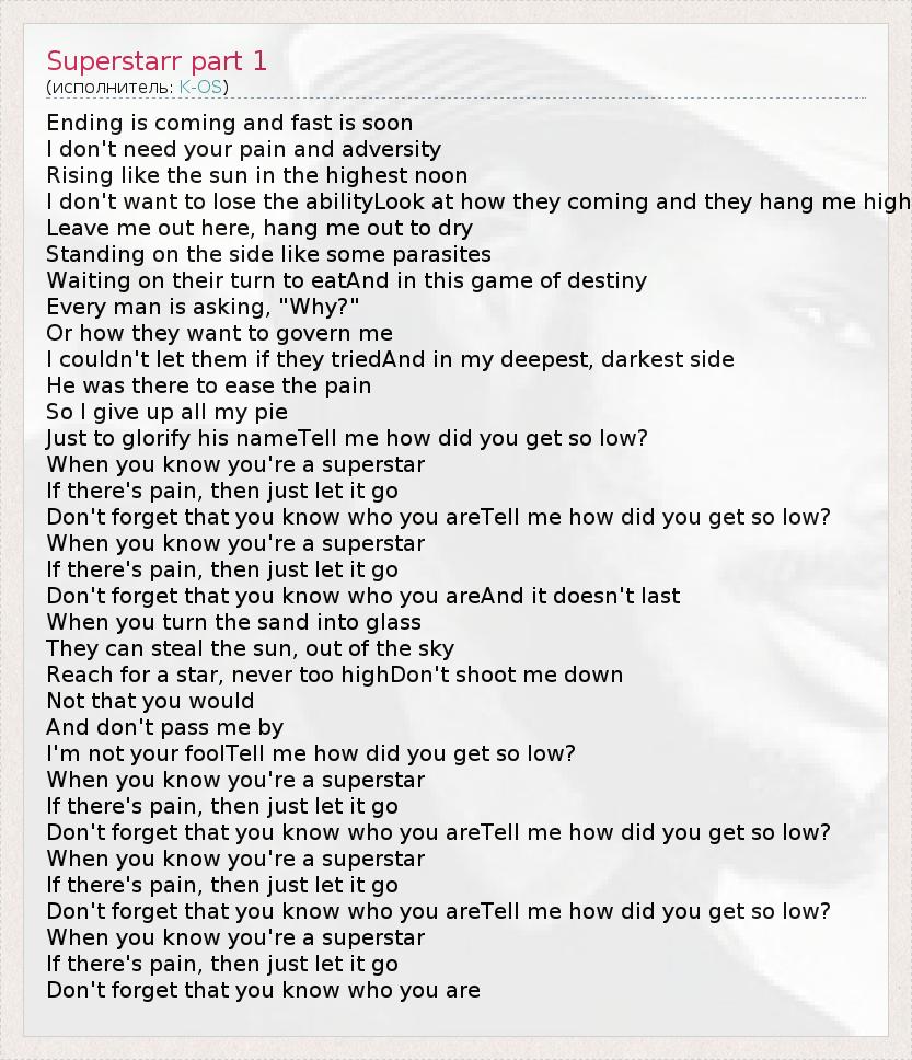 А как ты думаешь, о чем песня "Superstarr part 1" ?