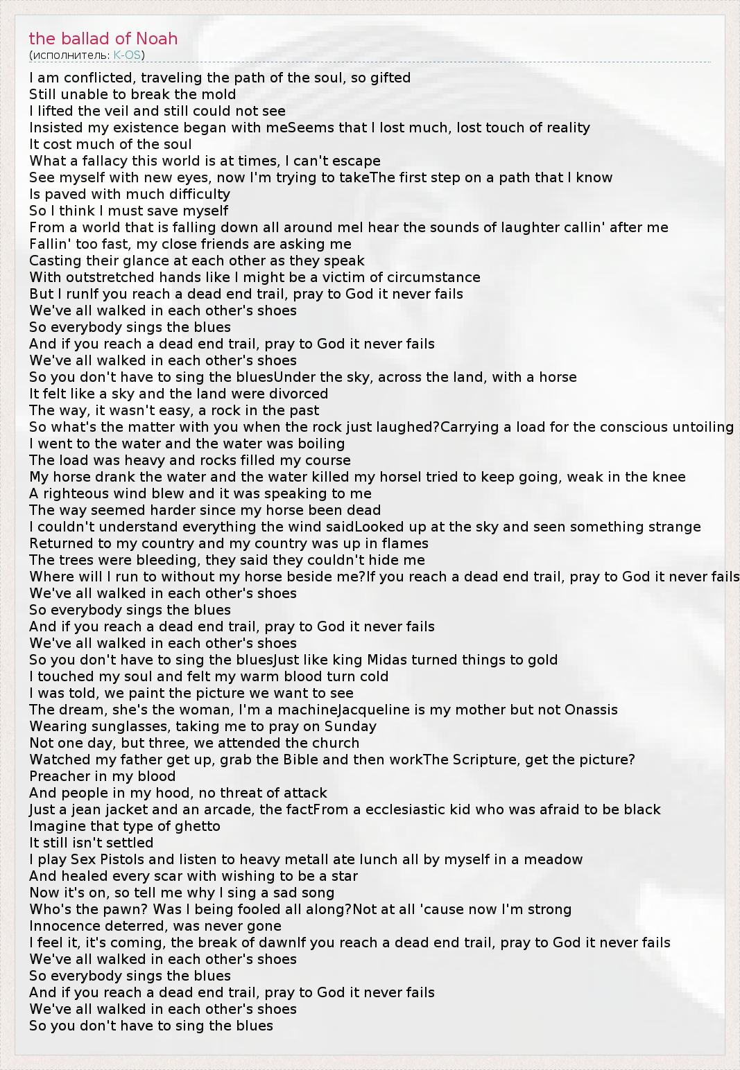 А как ты думаешь, о чем песня "the ballad of Noah" ?