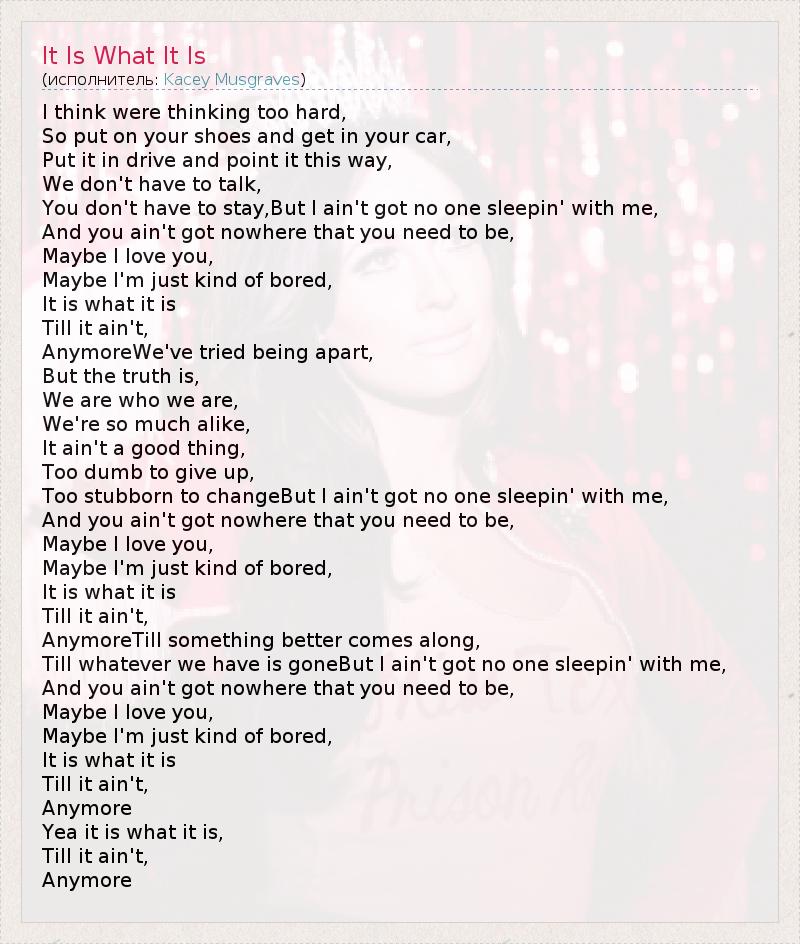 А как ты думаешь, о чем песня "It Is What It Is" ?