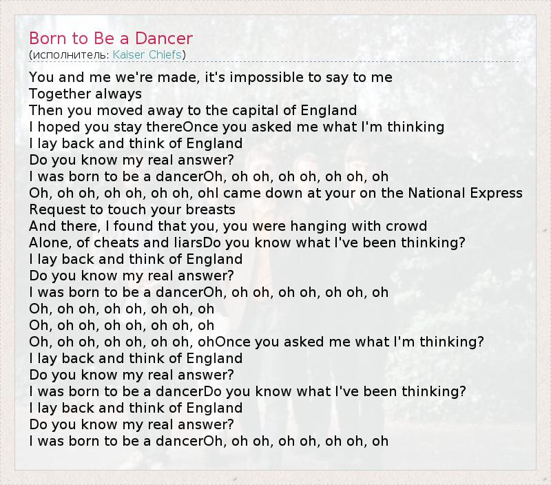 А как ты думаешь, о чем песня "Born to Be a Dancer" ?