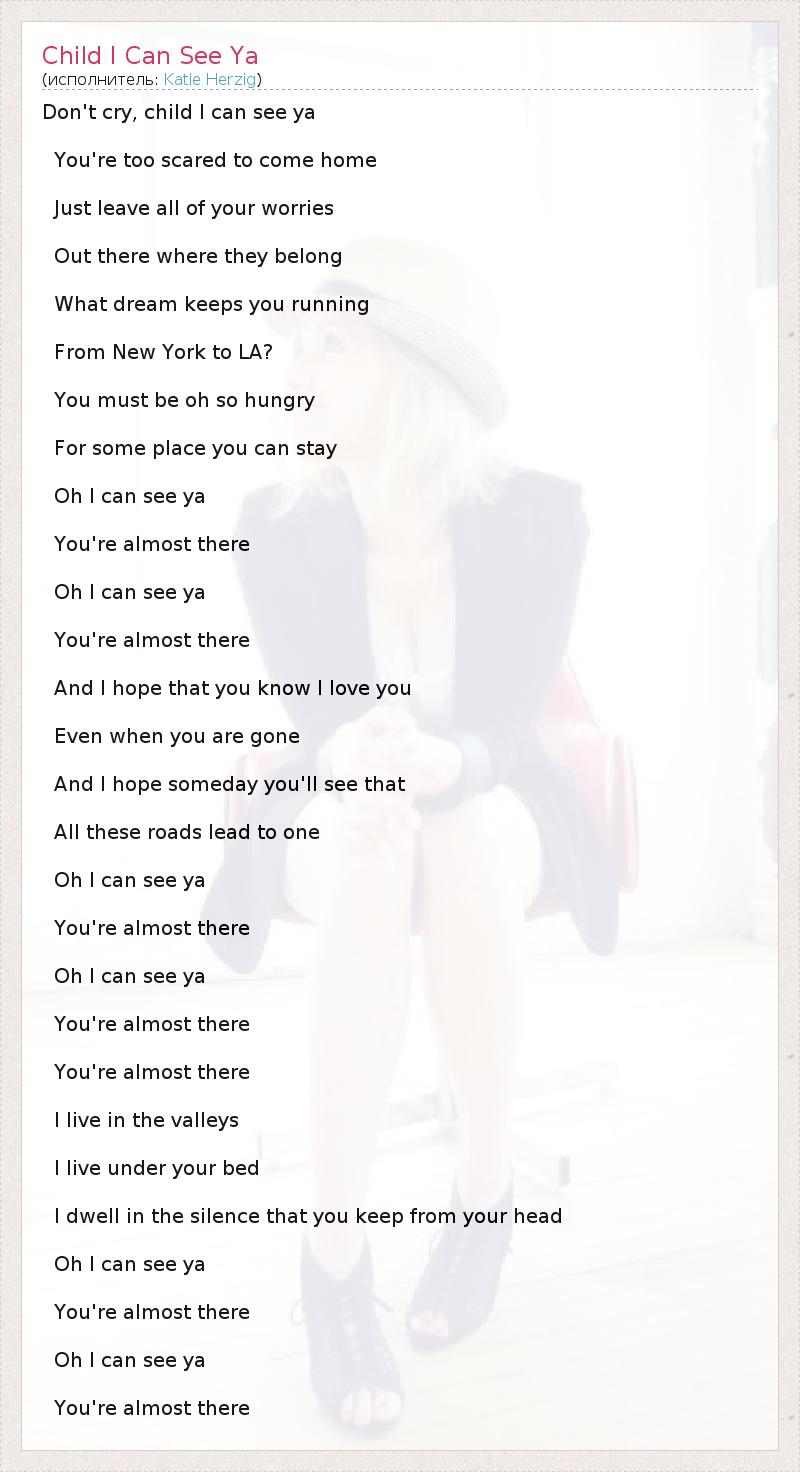 Don't cry, child I can see ya