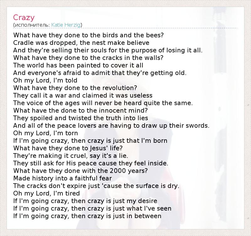 Это интересно:Кэти Херциг (Katie Herzig)Журнал «Paste» включил Кэти Херциг в список двадцати пяти молодых музыкантов, которых просто нельзя обойти вниманием. Как пишет «Paste», в альбоме «Apple Tree» уже сложившийся стиль Кэти поднимается на новую высоту. Это очень разные песни, умные и искренние, веселые, но при этом без лишних иллюзий. Журнал «Performing Songwriter» добавляет: «У нас на глазах рождается новое музыкальное... продолжение