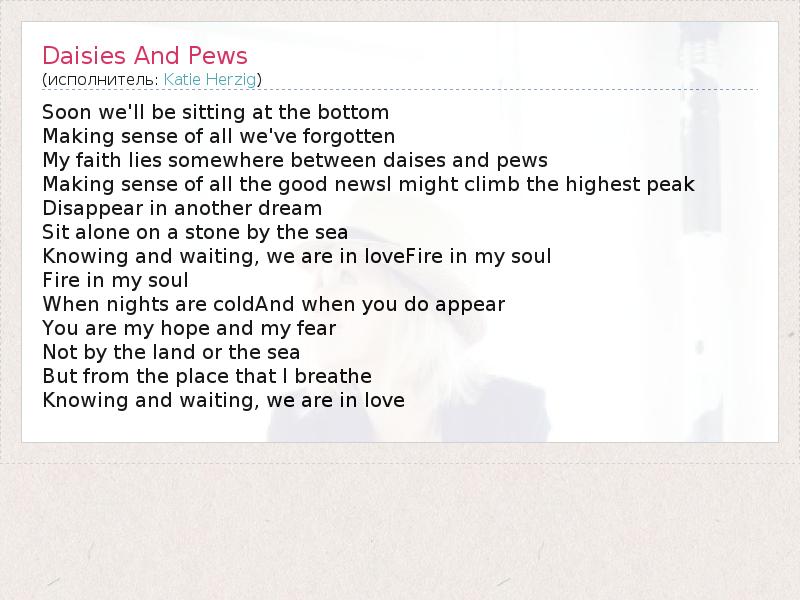 А как ты думаешь, о чем песня "Daisies And Pews" ?