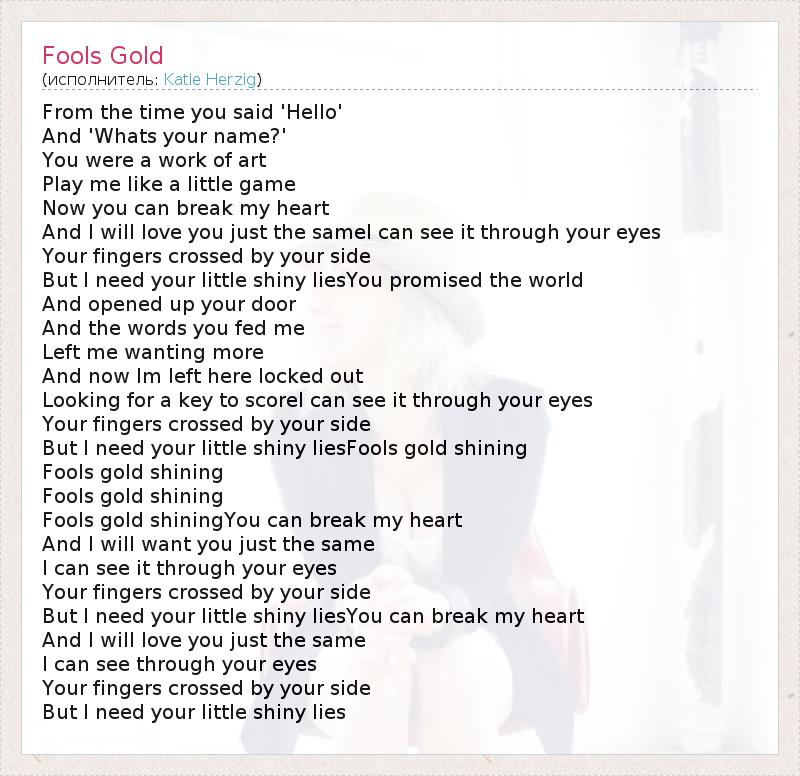 А как ты думаешь, о чем песня "Fools Gold" ?