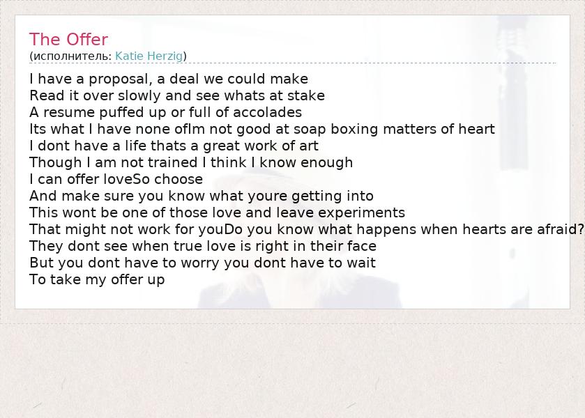 А как ты думаешь, о чем песня "The Offer" ?
