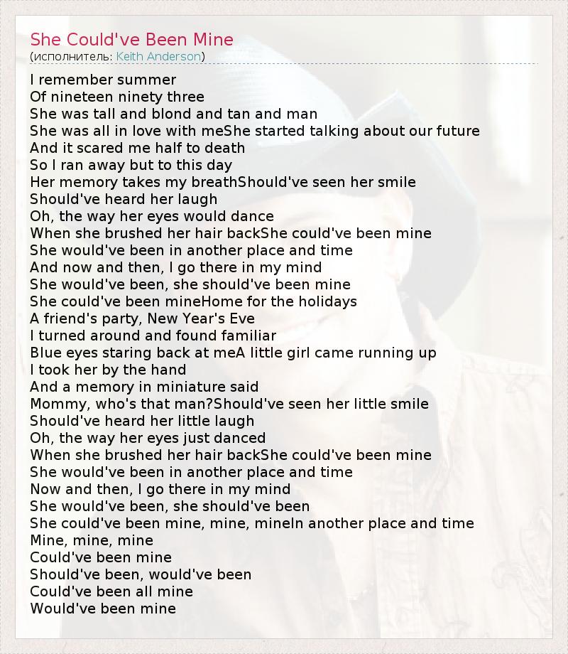 А как ты думаешь, о чем песня "She Could've Been Mine" ?
