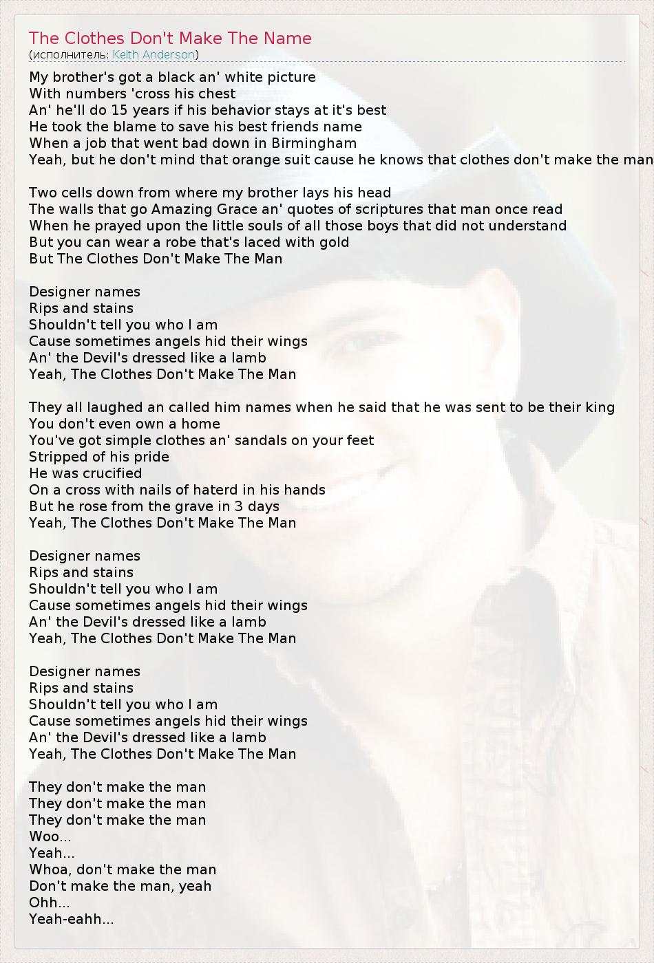 ГлавнаяИсполнителиKeith AndersonThe Clothes Don't Make The Name