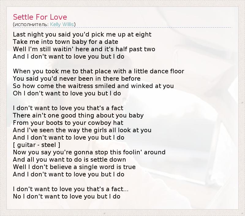 Last night you said you'd pick me up at eight Take me into town baby for a date Well I'm still waitin' here and it's half past two And I don't want to love you but I do When you took me to that place with a little dance floor You said you'd never been in there before So how come the waitress smiled and winked at you Oh I don't want to love you but I do I don't want to love you that's a fact There ain't one good thing about you baby From your boots to your cowboy hat And I've seen the way the girls all look at you And I don't want to love you but I do [ guitar - steel ] Now you say you're gonna stop this foolin' around And all you want to do is settle down Well I don't believe a single word is true And I don't want to love you but I do I don't want to love you that's a fact... No I don't want to love you but I do