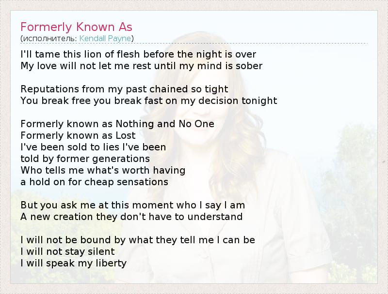 А как ты думаешь, о чем песня "Formerly Known As" ?