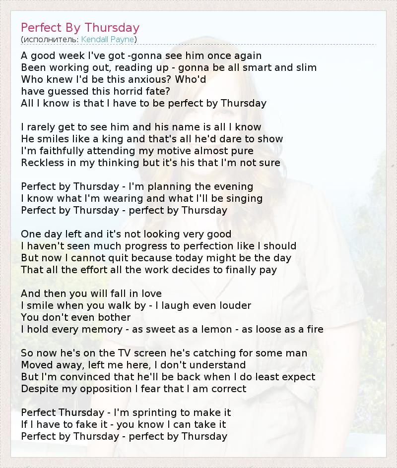 А как ты думаешь, о чем песня "Perfect By Thursday" ?