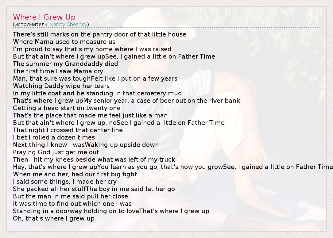 А как ты думаешь, о чем песня "Where I Grew Up" ?