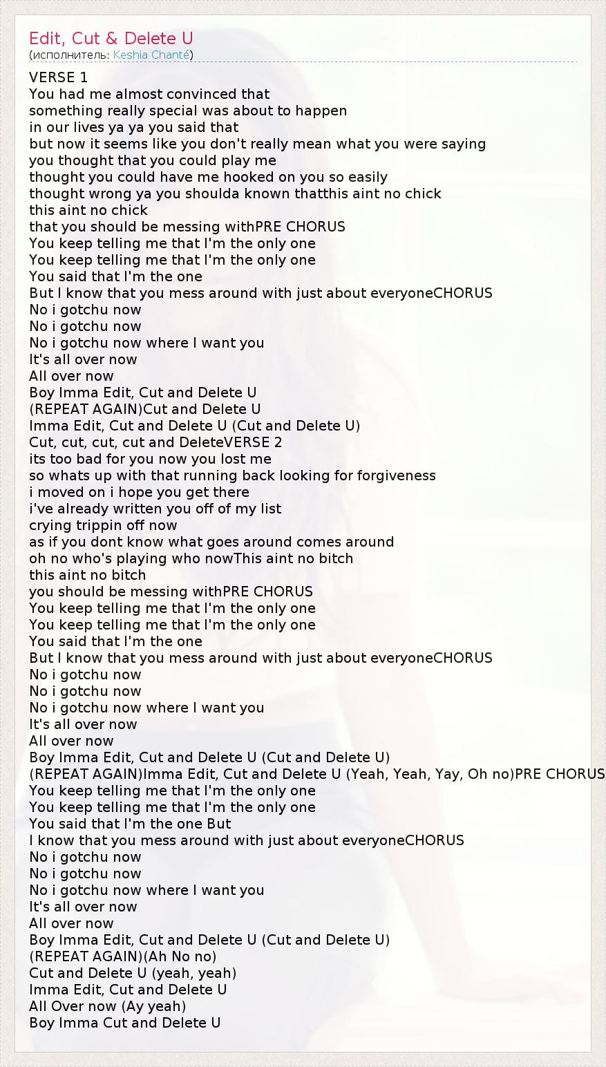 А как ты думаешь, о чем песня "Edit, Cut & Delete U" ?