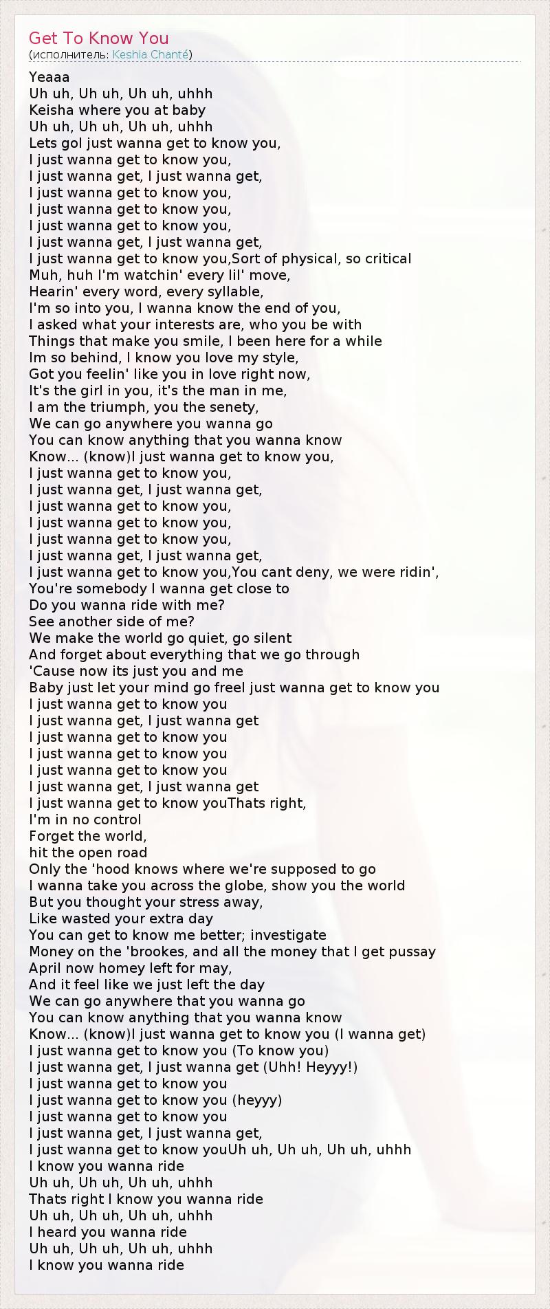I just wanna get to know youUh uh, Uh uh, Uh uh, uhhh