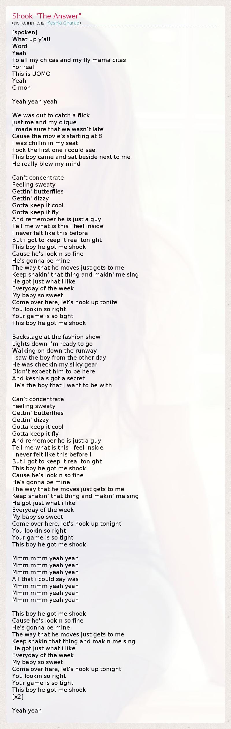 А как ты думаешь, о чем песня "Shook "The Answer"" ?