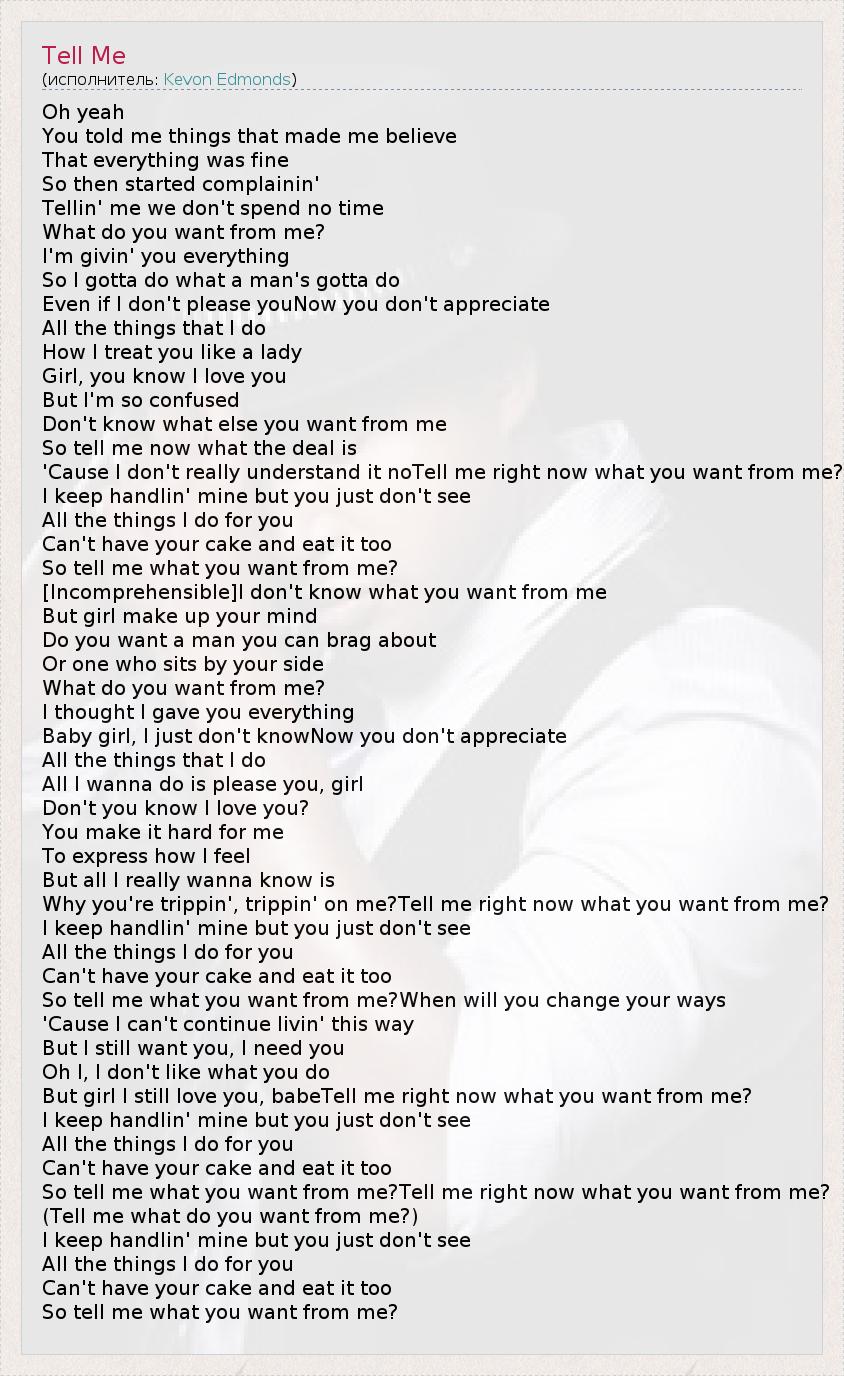 (Tell me what do you want from me?)