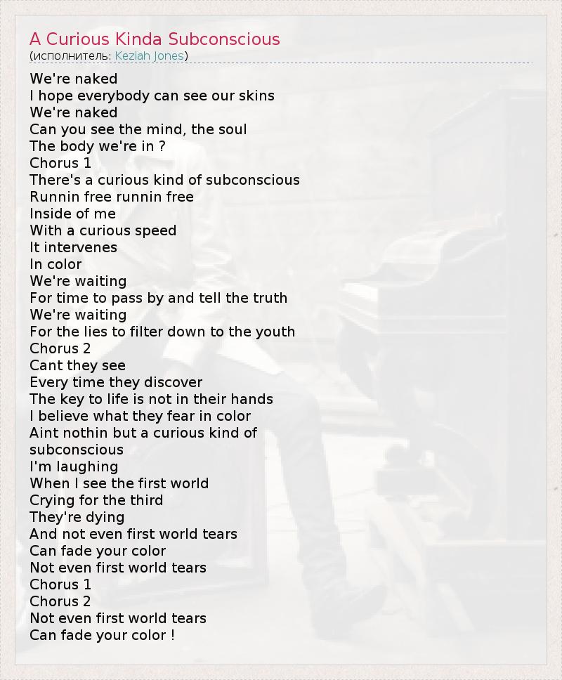 А как ты думаешь, о чем песня "A Curious Kinda Subconscious" ?