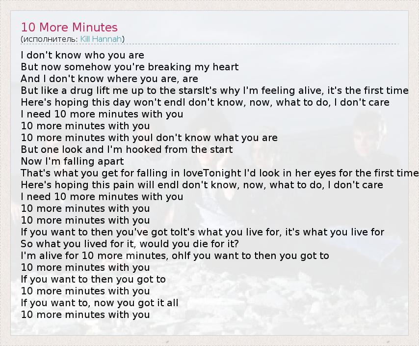 А как ты думаешь, о чем песня "10 More Minutes" ?