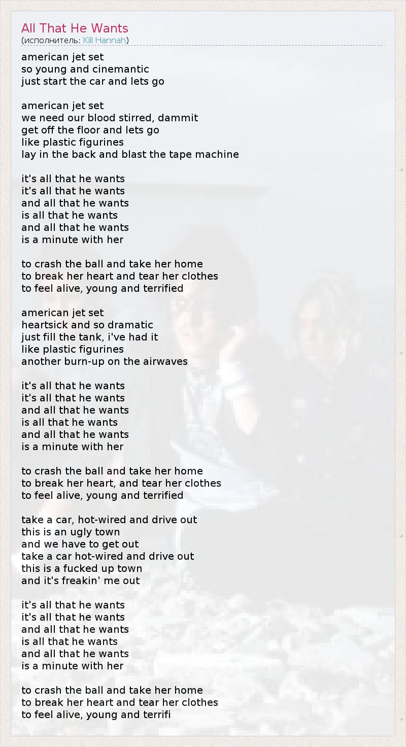 А как ты думаешь, о чем песня "All That He Wants" ?