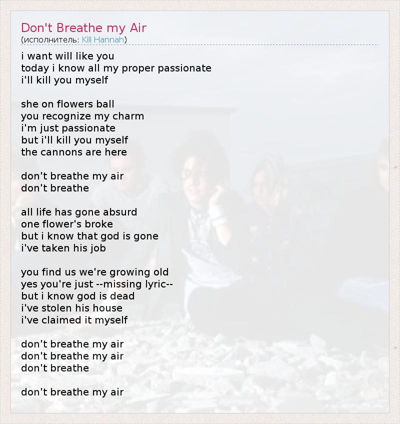 А как ты думаешь, о чем песня "Don't Breathe my Air" ?