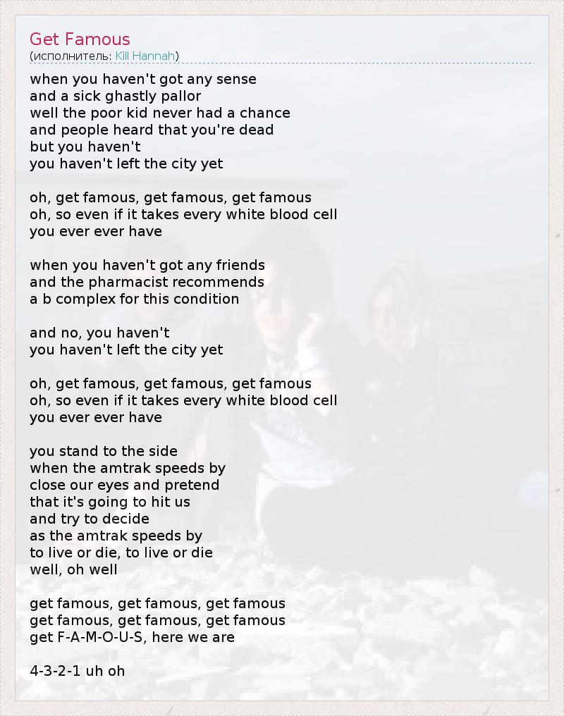 Это интересно:Kill Hannah – рок-группа из Чикаго, штат Иллинойс, в настоящее время подписавшая контракт с Atlantic Records. Kill Hannah была образована вокалистом и автором песен Мэтом Девайном в 1994 г. С 1996 по 2003 Kill Hannah независимо выпустили 8 синглов и номерных альбомов, все из которых были быстро распроданы многочисленными тиражами.Бывшая девушка вокалиста Мэта – тёзка группы. Они встретились в Государственном... продолжение
