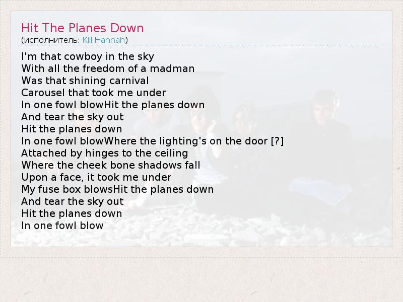 А как ты думаешь, о чем песня "Hit The Planes Down" ?