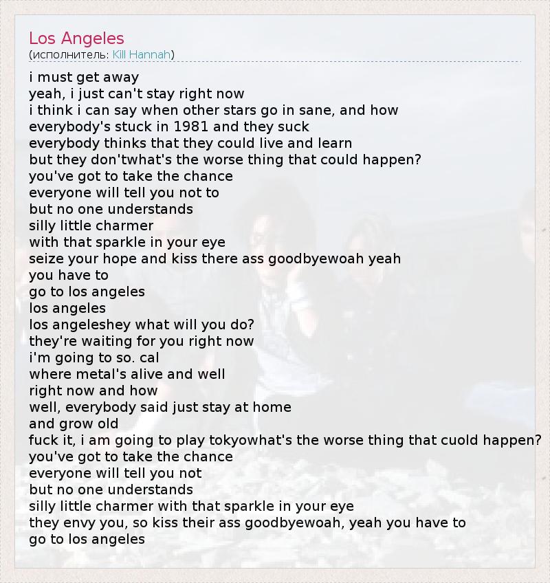 А как ты думаешь, о чем песня "Los Angeles" ?