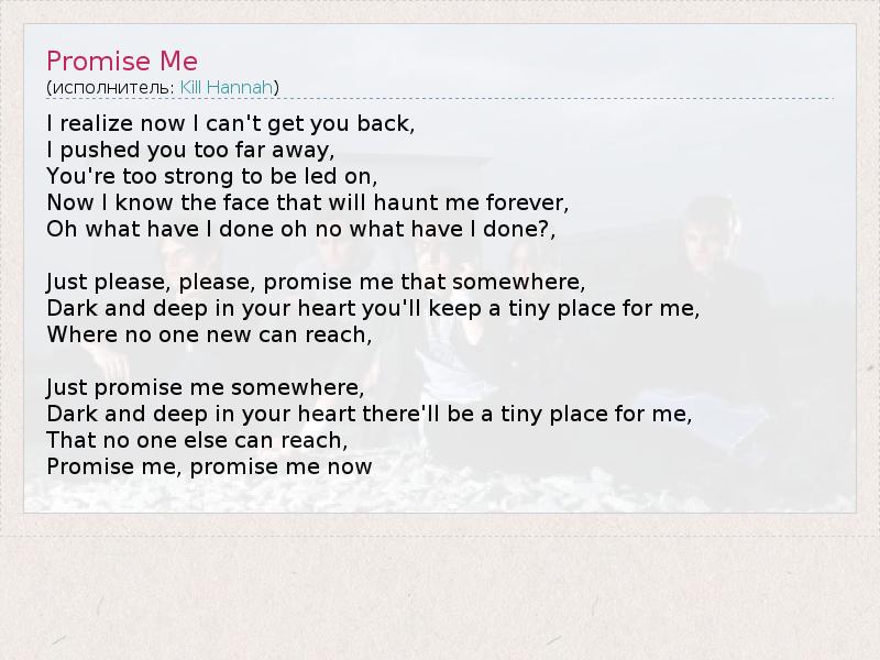 Просто пожалуйста, пожалуйста, обещай мне, что где-то,