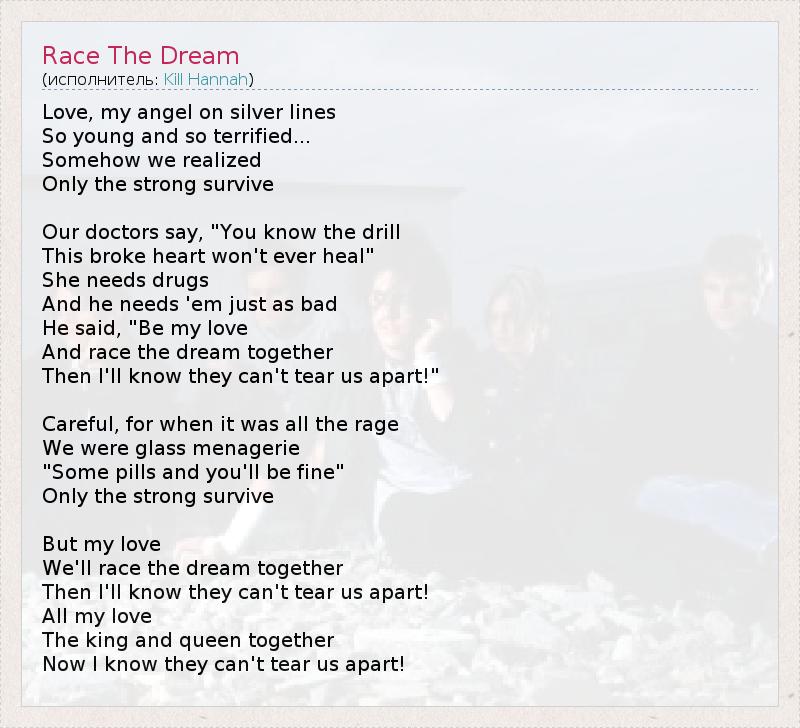 А как ты думаешь, о чем песня "Race The Dream" ?