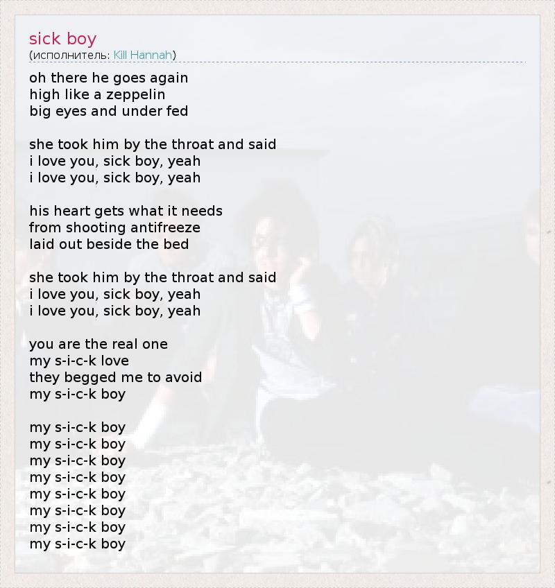 Это интересно:Kill Hannah – рок-группа из Чикаго, штат Иллинойс, в настоящее время подписавшая контракт с Atlantic Records. Kill Hannah была образована вокалистом и автором песен Мэтом Девайном в 1994 г. С 1996 по 2003 Kill Hannah независимо выпустили 8 синглов и номерных альбомов, все из которых были быстро распроданы многочисленными тиражами.Бывшая девушка вокалиста Мэта – тёзка группы. Они встретились в Государственном... продолжение