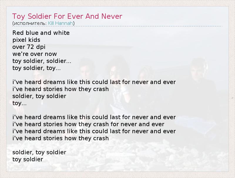 А как ты думаешь, о чем песня "Toy Soldier For Ever And Never" ?