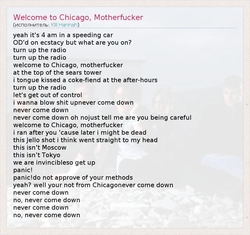 А как ты думаешь, о чем песня "Welcome to Chicago, Motherfucker" ?