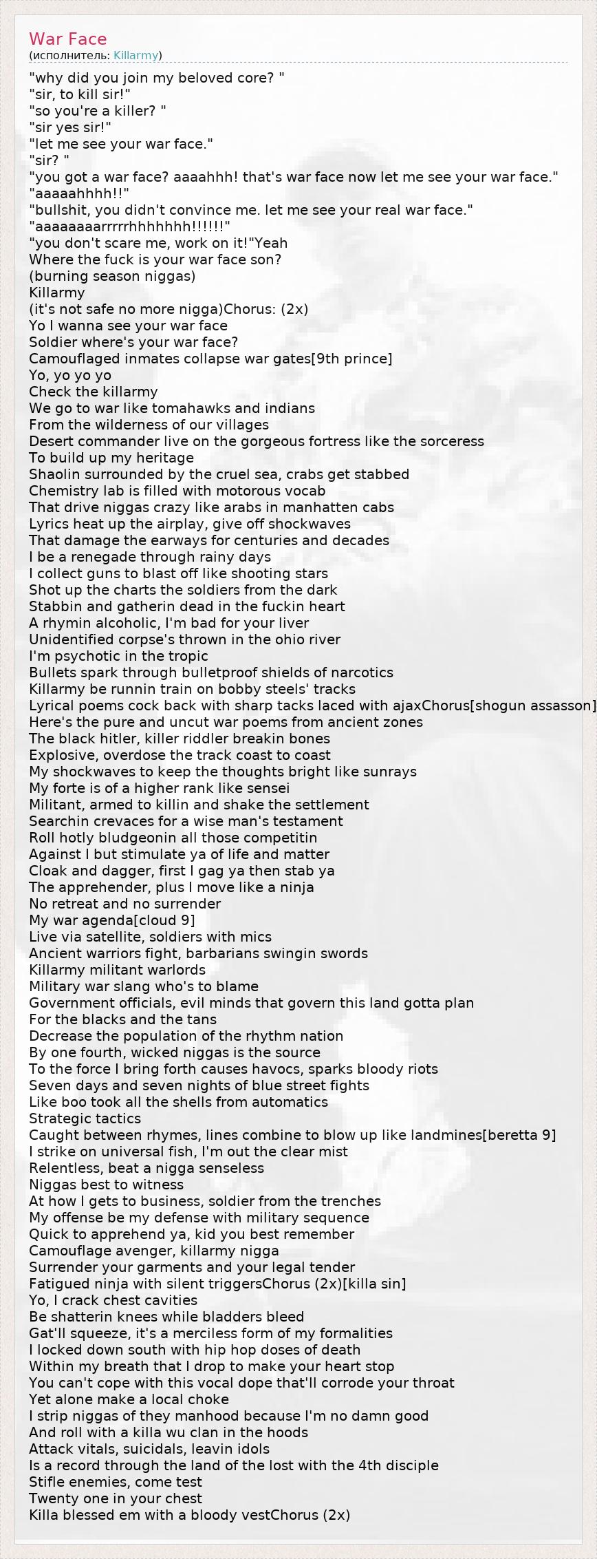 Fatigued ninja with silent triggersChorus (2x)[killa sin]
